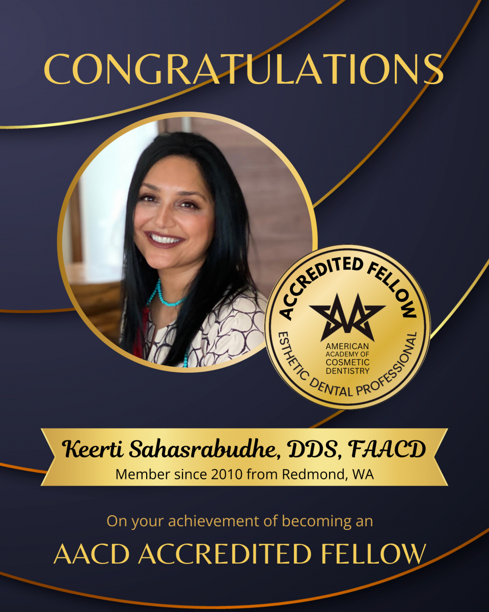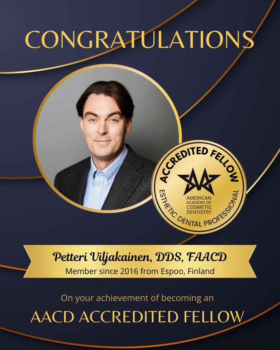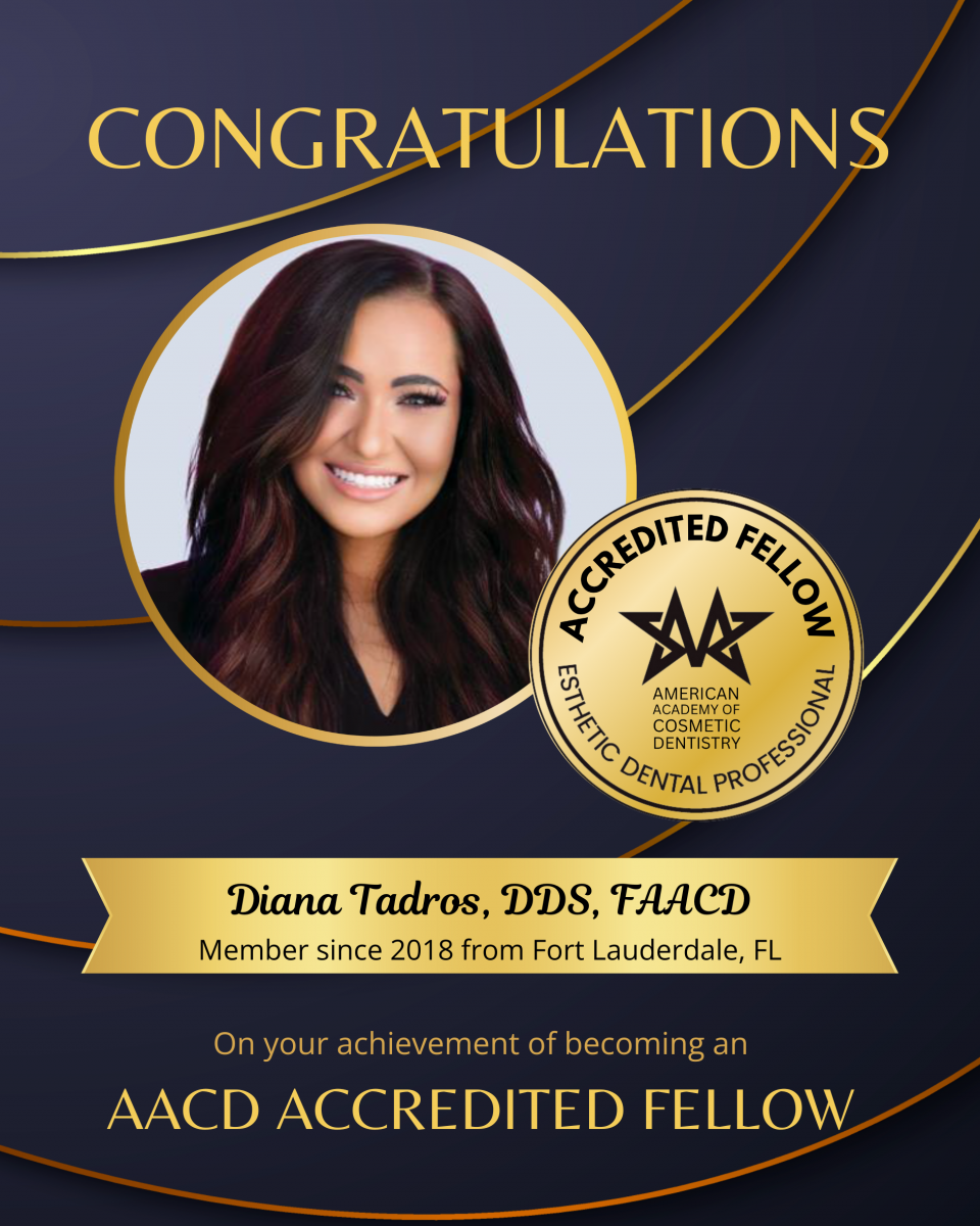 Congratulations to our newest Accredited Fellow for achieving the highest credential earned in the American Academy of Cosmetic Dentistry (AACD).